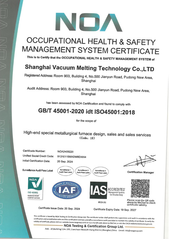 职业健康安全管理体系认证证书